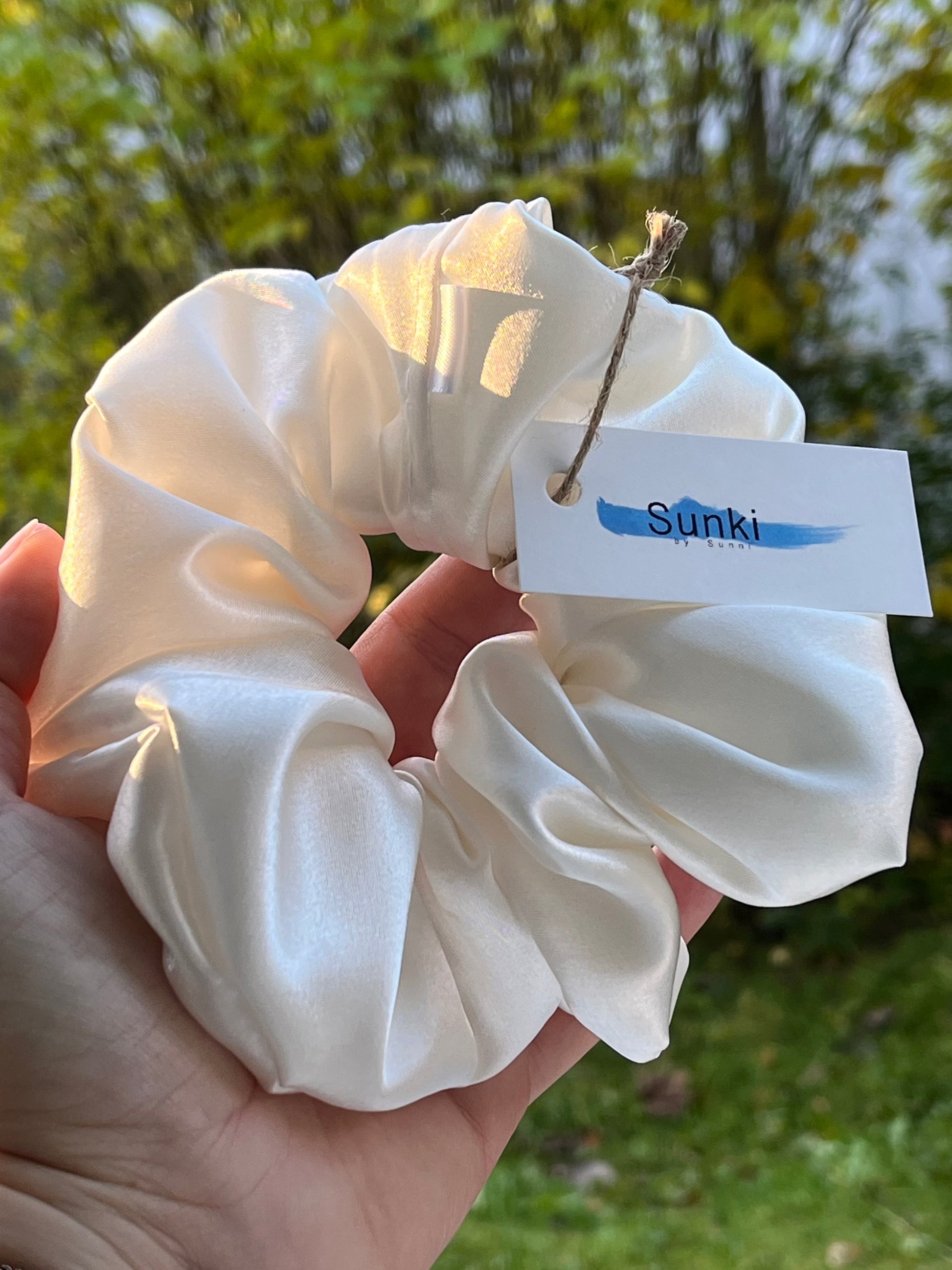 Vår Perlehvit Scrunchie er laget i et mykt satengstoff og kommer i en ren naturhvit farge. Scrunchien er nøye designet for å passe flere hårtyper. Bruk den til å lage en voluminous bun - messy eller classy, den funker like godt til begge! Denne scrunchien er laget i sateng, noe som er ekstra skånsomt for håret.